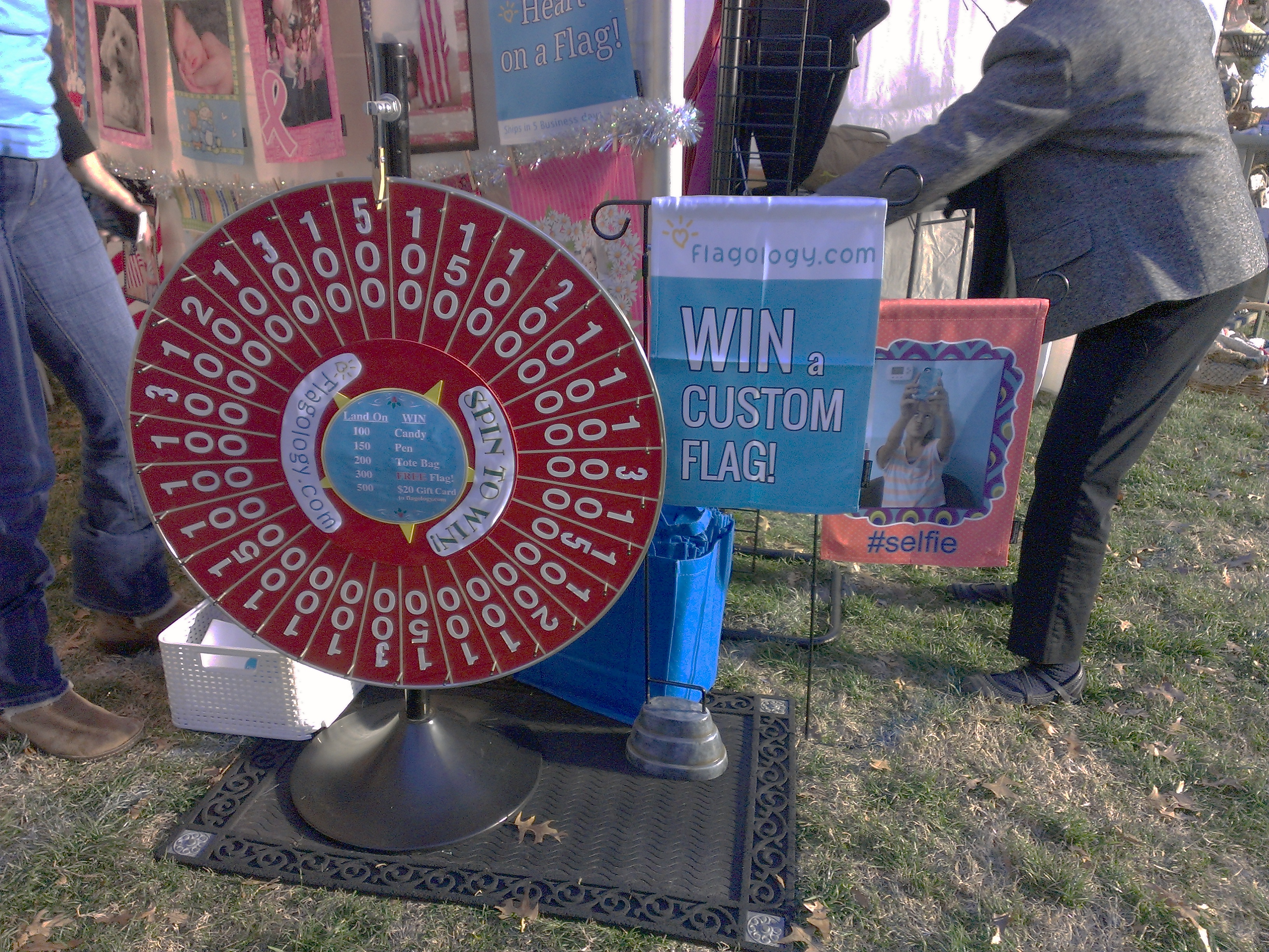 This year, the Flagology team decided to experiment with trade shows. And, boy, has it been a whirlwind experience! Just last weekend the Flagology team was lucky enough to participate in Christmas in Davidson. If you weren’t able to make it to Christmas in Davidson, let us tell you, it was a blast! Our tent was bursting with energy, not only from our team, but from all of the kids (and kids at heart) that spun our prize wheel. With prizes ranging from reusable bags and candy to gift certificates and free flags, everyone was a winner at our tent. To be completely honest, we were starting to think our wheel was rigged because of just how many people went home with gift certificates and free flags!